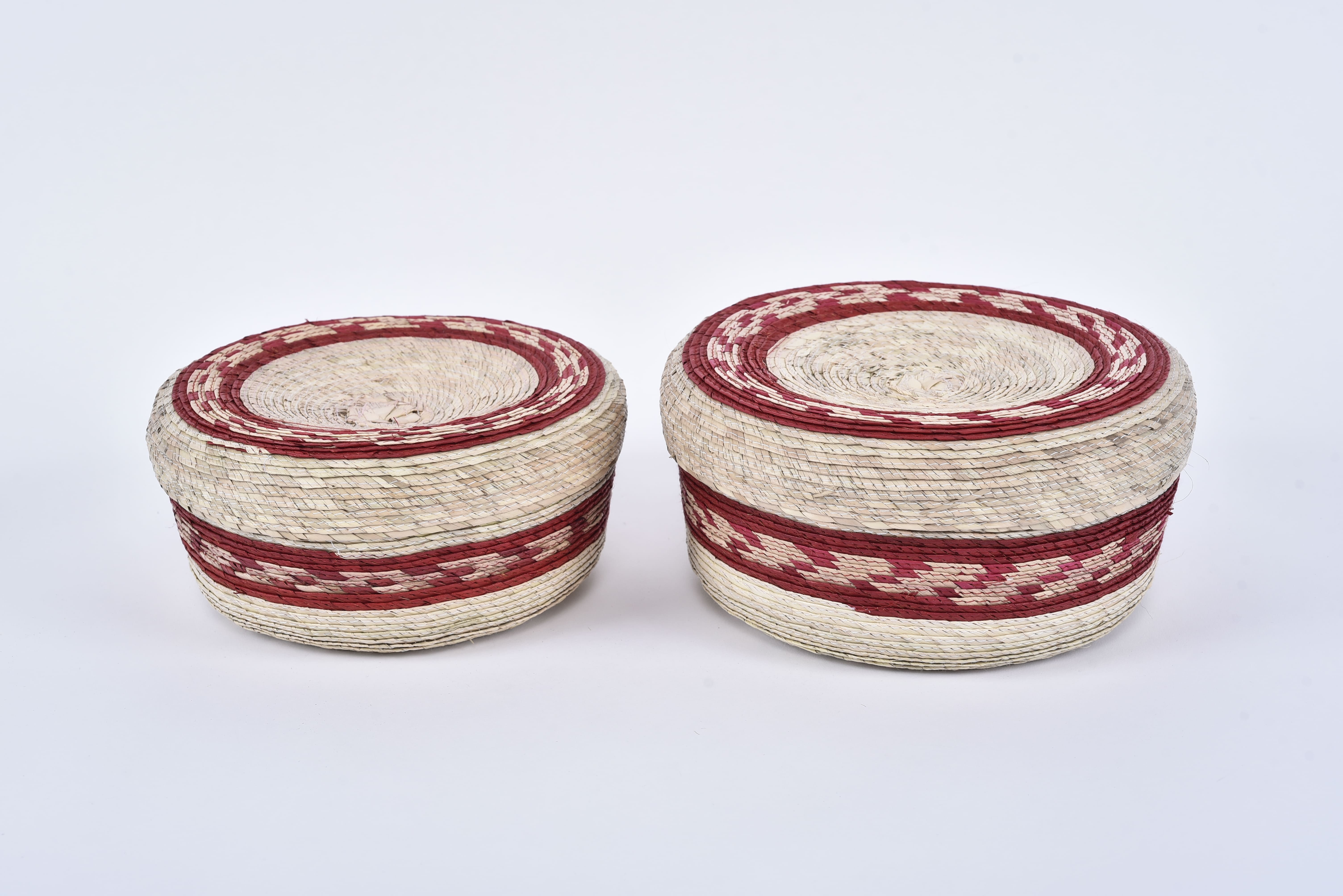 Handmade palm tortilla holders made by artisans from Chilpancingo, excellent for keeping your tortillas warm in a stylish container to decorate your table. DIMENSIONS: OUTER TORTILLA WARMER: 22 CM DIAMETER X 10 CM HEIGHT INNER TORTILLA WARMER: 20 CM DIAMETER X 9 CM HEIGHT