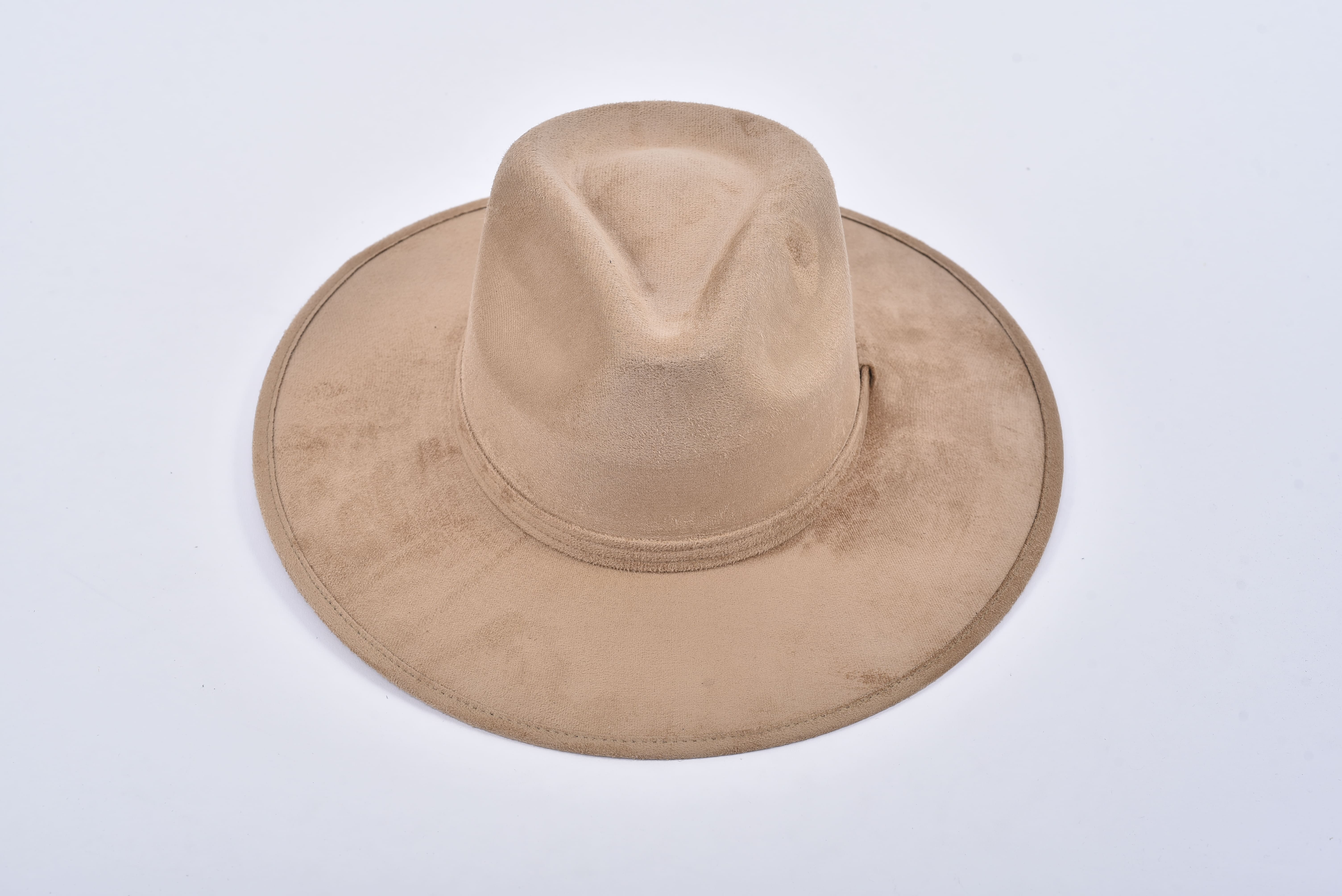 Fedora shape with flat brim with elastic inside for mayor confort for the head, made of synthetic suede.