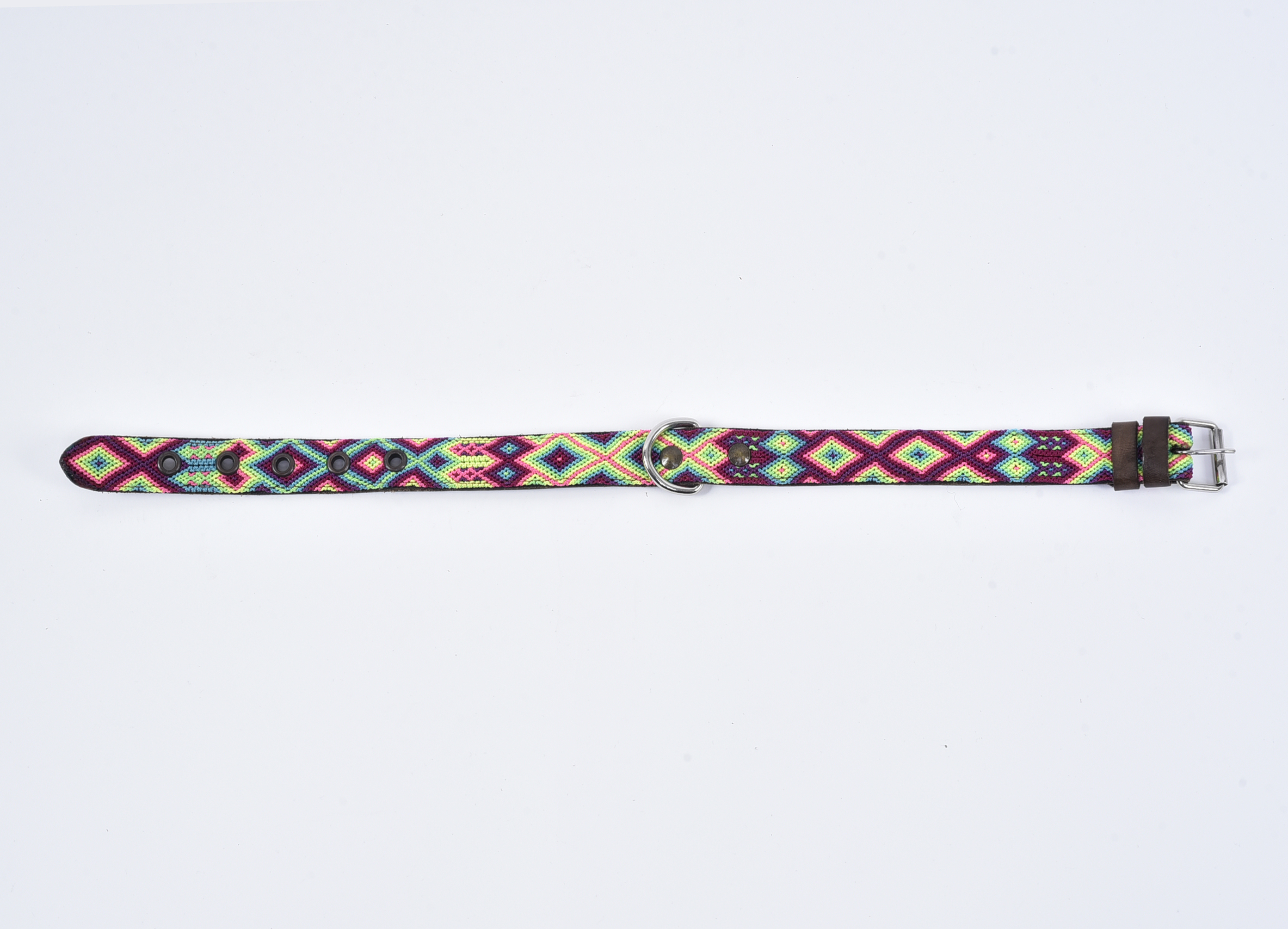 Leather dog collar embroidered with native art handmade MEDIUM THIN